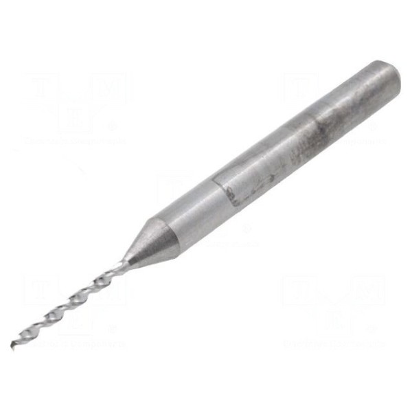 Wiertło przeznaczone do obróbki płytek drukowanych. Narzędzie zostało wykonane ze stali węglowej, co zapewnia parametry techniczne wymagane przy precyzyjnym nawiercaniu laminatów.