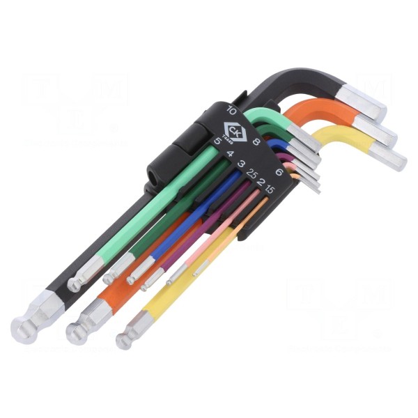 Zestaw 9 kluczy imbusowych kulistych HEX 1,5–10mm