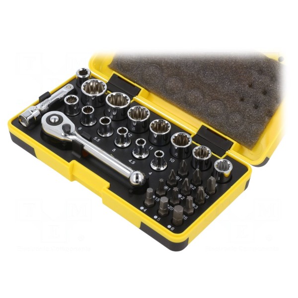 Zestaw kluczy nasadowych 1/4" 28 elementów, stal chromowo-wanadowa