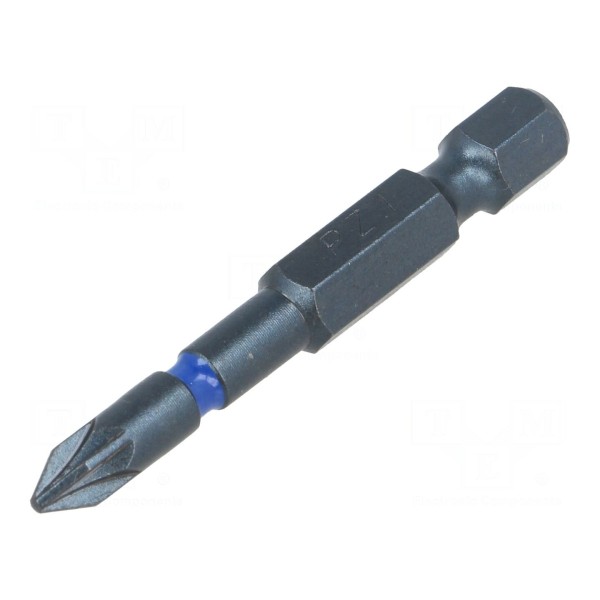 Końcówka wkrętakowa typu Pozidriv o rozmiarze PZ1 przeznaczona jest do współpracy z uchwytami o gnieździe 1/4" oraz standardzie E6,3mm. Całkowita długość elementu wynosi 50 mm.