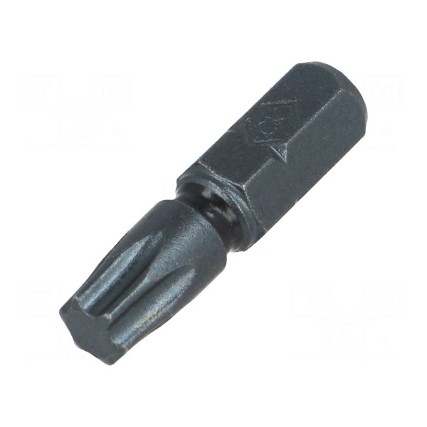 Końcówka wkrętakowa typu Torx o rozmiarze grota TX30 przeznaczona jest do współpracy z wkrętakami wyposażonymi w gniazdo 1/4" (C6,3mm). Całkowita długość elementu wynosi 25 mm.