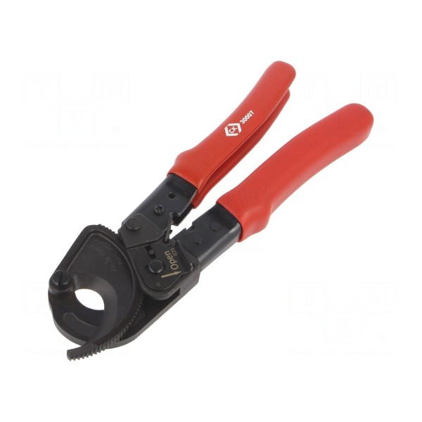 Nożyce o długości 190 mm wykonane ze stali. Narzędzie przeznaczone jest do cięcia kabli miedzianych oraz aluminiowych, zapewniając obsługę przewodów o średnicy zewnętrznej do 32 mm.
