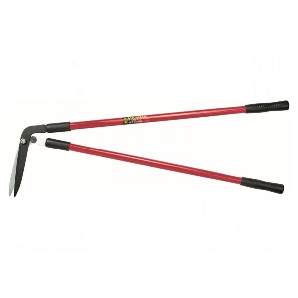 Nożyce ogrodowe przeznaczone do przycinania trawy. Narzędzie charakteryzuje się całkowitą długością wynoszącą 940 mm, co pozwala na wygodną pracę w pozycji wyprostowanej.