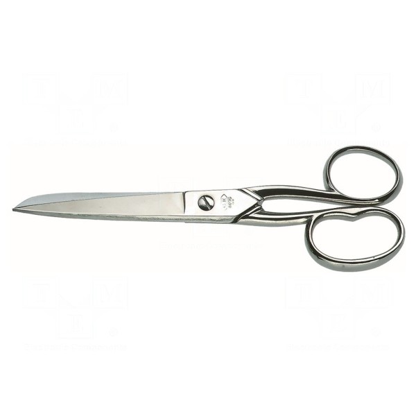 Nożyczki wyposażone w proste ostrza o długości całkowitej 180mm. Konstrukcja narzędzia przeznaczona jest do precyzyjnego cięcia materiałów w zastosowaniach technicznych.