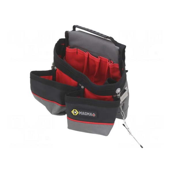 Pas monterski C.K MA2736 to akcesorium zaprojektowane do organizacji i przenoszenia narzędzi ręcznych. Produkt pełni funkcję pojemnika narzędziowego, ułatwiającego dostęp do niezbędnego wyposażenia podczas prac montażowych.