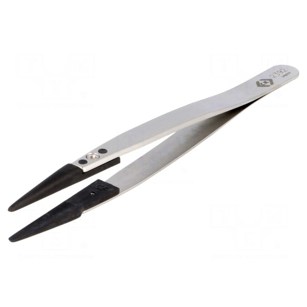Pęseta prosta ESD 130mm, końcówki z włókna węglowego