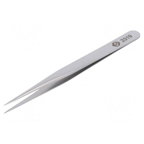 Pęseta o długości 120 mm przeznaczona jest do wykonywania zadań precyzyjnych. Konstrukcja narzędzia charakteryzuje się prostym kształtem ramion oraz ostrym wykończeniem końcówki.