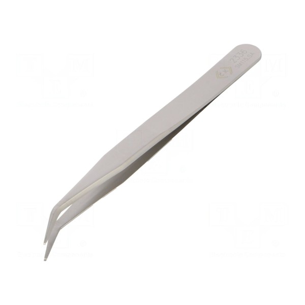 Konstrukcja pęsety charakteryzuje się niemagnetycznymi właściwościami, co umożliwia pracę z komponentami wrażliwymi na oddziaływanie pól magnetycznych. Wyposażona jest w zagięte ostrza ze specjalnie wyprofilowanym zakończeniem, które ułatwia chwytanie i manipulację drobnymi przedmiotami.