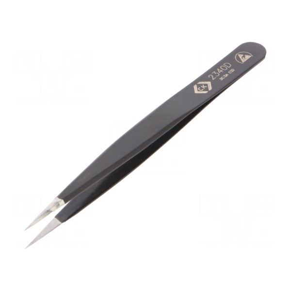 Pęseta marki C.K to narzędzie o prostej konstrukcji z ostrym kształtem końcówki. Model ten został wykonany w wersji ESD, co pozwala na bezpieczną pracę z komponentami wrażliwymi na wyładowania elektrostatyczne.