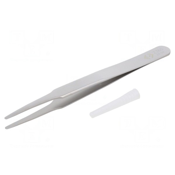 Pęseta o długości 120 mm służy do precyzyjnego pozycjonowania niewielkich komponentów. Narzędzie znajduje zastosowanie w pracach wymagających dokładnego chwytania i układania drobnych części.