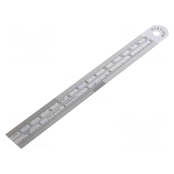 Przymiar o długości całkowitej 150 mm oraz szerokości 17 mm jest narzędziem przeznaczonym do wykonywania precyzyjnych pomiarów liniowych. Wykonanie konstrukcji uwzględnia praktyczne zastosowanie w warsztacie.