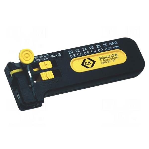 Narzędzie typu ściągacz izolacji przeznaczone jest do pracy z przewodami o przekroju okrągłym. Urządzenie pozwala na precyzyjne usuwanie powłoki izolacyjnej z żył o średnicy zewnętrznej mieszczącej się w zakresie od 0,25mm do 0,8mm.