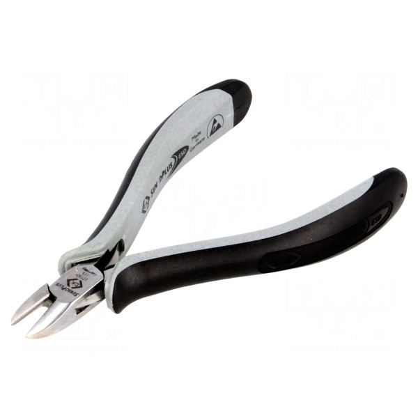 Szczypce boczne do cięcia typu ESD o długości 125 mm przeznaczone są do precyzyjnych prac w elektronice i elektrotechnice. Narzędzie wykonano w wersji ESD, co umożliwia pracę przy komponentach wrażliwych na wyładowania elektrostatyczne. Konstrukcja narzędzia charakteryzuje się owalną główką, niklowaną powierzchnią oraz ostrzami hartowanymi indukcyjnie, które zapewniają cięcie z fazą.