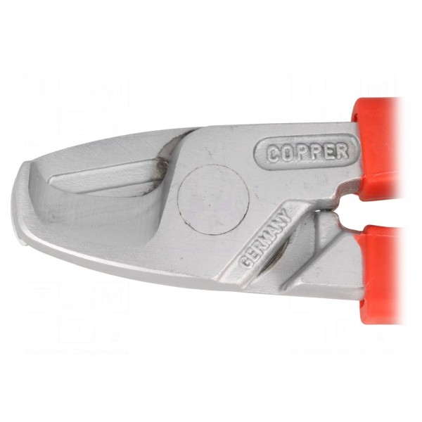 Ostrza narzędzia są hartowane indukcyjnie, co zapewnia ich skuteczność podczas eksploatacji. Szczypce posiadają izolację chroniącą przy pracy z napięciem do 1 kV AC oraz 1,5 kV DC. Produkt spełnia wymogi norm VDE 0682-201, EN 60900 oraz ASTM-F 1505-94.