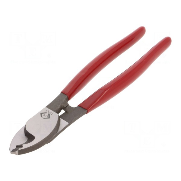 Szczypce C.K o długości 210 mm przeznaczone są do cięcia przewodów wykonanych z miedzi oraz aluminium. Narzędzie pozwala na skuteczną pracę z kablami o maksymalnej średnicy 8 mm.