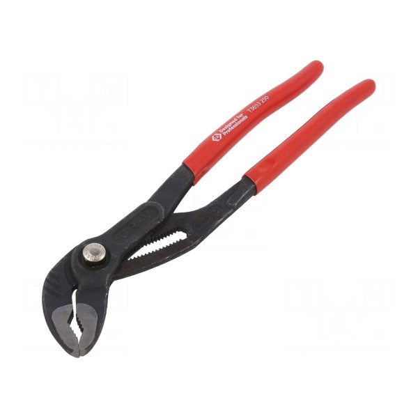 Narzędzie typu szczypce przeznaczone jest do chwytania rur i elementów o większych średnicach. Konstrukcja umożliwia pewny chwyt oraz regulację rozwarcia szczęk w zależności od wymiarów obrabianego przedmiotu.