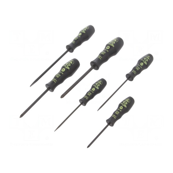 Zestaw wkrętaków ESD, 6 sztuk, profile płaskie i Pozidriv