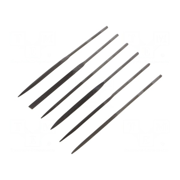Zestaw zawiera sześć pilników typu iglak, które przeznaczone są do precyzyjnych prac wykończeniowych. Całkowita długość każdego z narzędzi wchodzących w skład kompletu wynosi 140 mm.