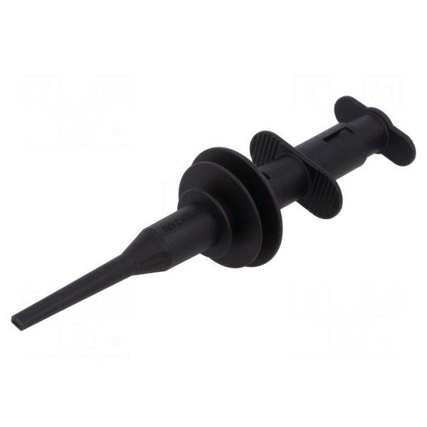 Akcesorium zostało wyposażone w gniazdo typu banan 4mm, co umożliwia współpracę z wieloma standardowymi przewodami pomiarowymi. Urządzenie jest zgodne z normą bezpieczeństwa CAT III 1000V. Całkowita długość chwytaka wynosi 178mm, a obudowa wykonana jest w kolorze czarnym.