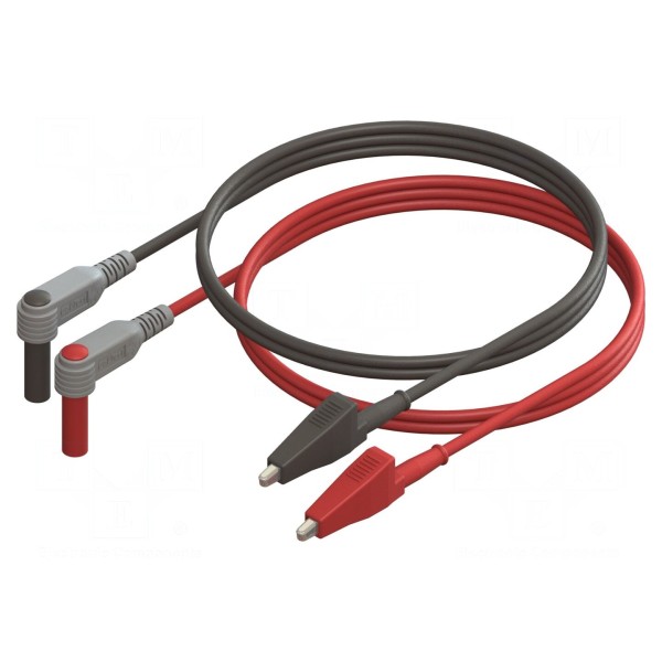 Przewody pomiarowe o długości 0,6 m zostały wyposażone w izolowane wtyki bananowe kątowe 4 mm oraz zaciski krokodylkowe. Zastosowana izolacja z silikonu zapewnia elastyczność oraz wytrzymałość w zakresie temperatur od -20°C do 80°C. Przewody posiadają przekrój żyły 18 AWG.