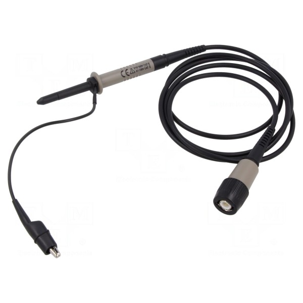 Przewód pomiarowy ma długość 1,2m, a sama sonda posiada średnicę 5mm. W zestawie: adapter BNC, chwytak pomiarowy, izolator, końcówka pomiarowa, przewód uziemiający.