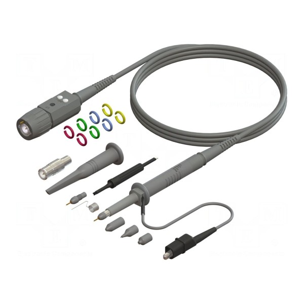 W zestawie: adapter BNC, chwytak pomiarowy, izolator, końcówka pomiarowa, przewód uziemiający x2.