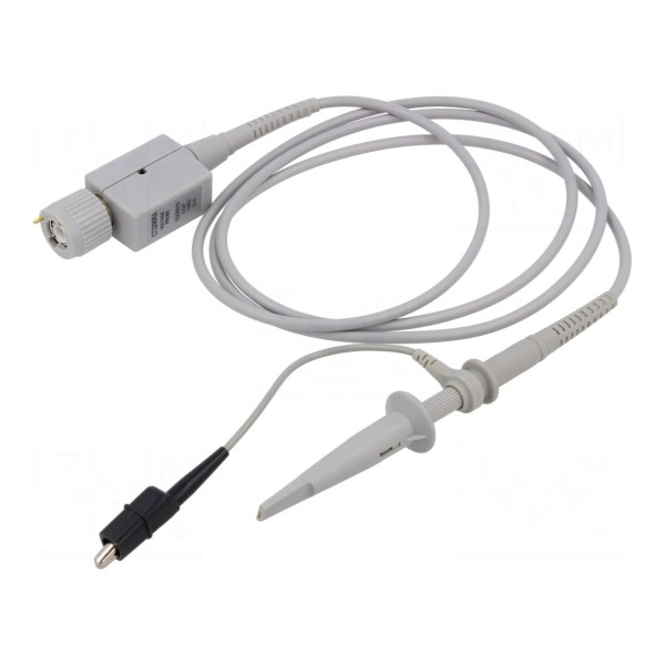 Konstrukcja sondy charakteryzuje się średnicą 3,5mm i jest wyposażona w przewód o długości 1,3m. Produkt spełnia wymagania normy bezpieczeństwa CAT II 300V, co pozwala na wykorzystanie w standardowych aplikacjach pomiarowych. Zakres kompensacji wynosi od 8 do 18pF, a pojemność sondy to 8pF.