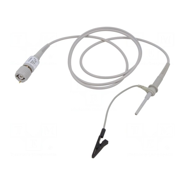 Sonda posiada przewód o długości 1 m oraz impedancję wyjściową 1 MΩ. Zakres kompensacji wynosi od 10 do 25 pF, co pozwala na precyzyjne dopasowanie parametrów sondy do kanału wejściowego oscyloskopu. W zestawie: nasadka ochronna, przewód uziemiający.