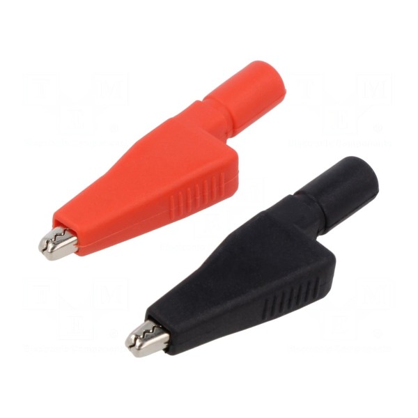 Zacisk krokodylkowy to akcesorium pomiarowe przeznaczone do pracy z prądem znamionowym 10A. Element wyposażony jest w gniazdo o rozmiarze 2mm oraz stalowe, niklowane styki, które zapewniają odpowiednie parametry przewodzenia. Izolacja korpusu wykonana została z tworzywa PVC.