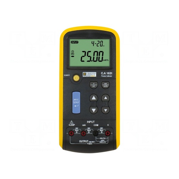 Kalibrator CHAUVIN ARNOUX C.A 1631 to przyrząd przeznaczony do pomiarów oraz symulacji sygnałów napięciowych i prądowych DC. Urządzenie oferuje zakresy pomiarowe napięcia DC 0–100mV oraz 10V z dokładnością ±(0,02% + 3 cyfry), a także pomiar prądu DC w zakresie 0–24mA z dokładnością ±(0,015% + 3 cyfry). Funkcjonalność urządzenia obejmuje również pracę w trybie zadajnika prądu 0–24mA oraz zadajnika napięcia w zakresach 0–100mV i 0–20V.