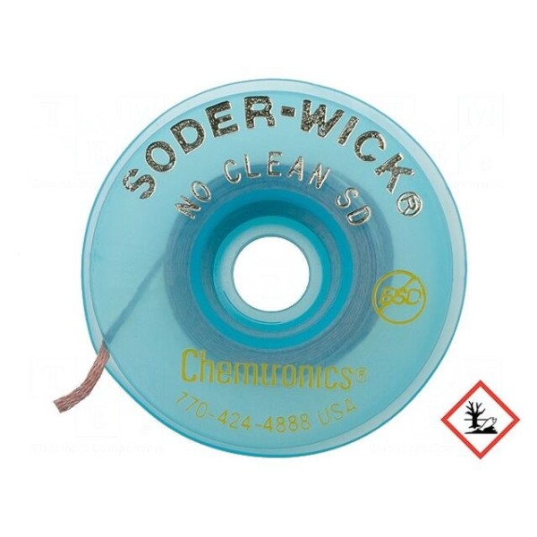 Taśma rozlutowująca CHEMTRONICS wykonana jest z miedzi i charakteryzuje się szerokością 1,5 mm oraz długością 1,5 m. Wersja ESD została zaprojektowana do bezpiecznej pracy z układami elektronicznymi. Produkt cechuje się bardzo dobrą przewodnością cieplną, co wspomaga proces usuwania lutowia z pól lutowniczych.