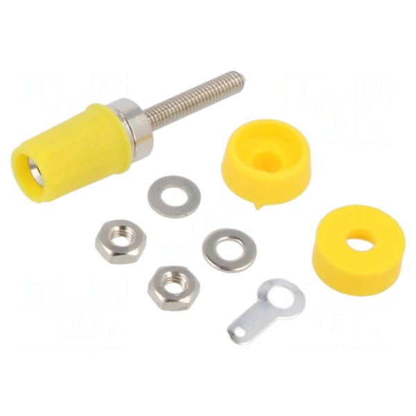 Gniazdo bananowe 4mm, 15A, montaż panelowy, kolor żółty