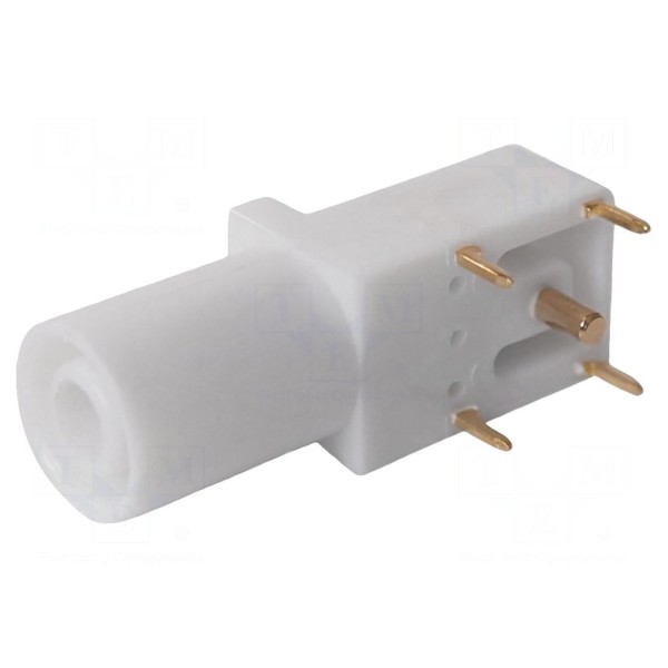 Konstrukcja przystosowana jest do montażu poprzez lutowanie. Komponent spełnia wymagania normy EN 61010 oraz jest zgodny z klasyfikacją bezpieczeństwa CAT III 1000V. Produkt w kolorze białym znajduje zastosowanie w systemach pomiarowych i laboratoryjnych.