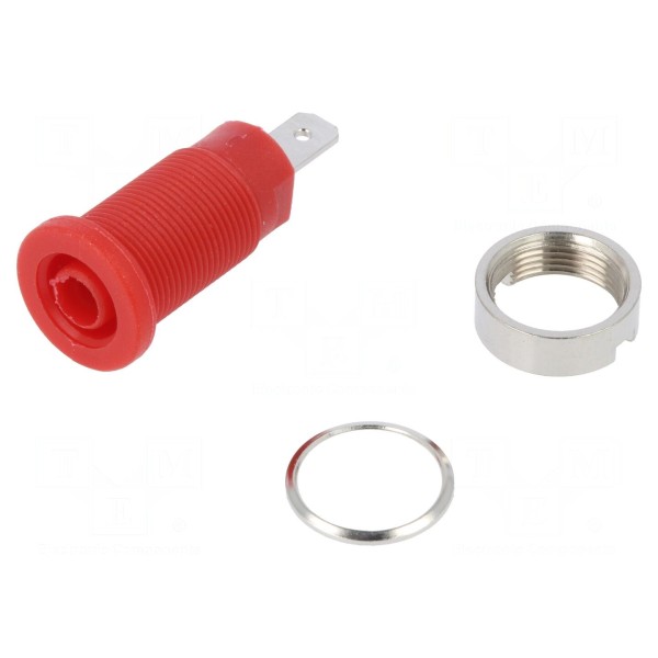 Gniazdo bananowe 4mm, 1000V DC, 24A, kolor czerwony