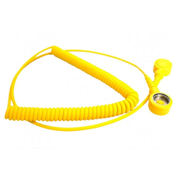 Konstrukcja przewodu została zakończona z obu stron zatrzaskami żeńskimi o średnicy 10mm, co umożliwia szybki montaż w systemach ochrony antystatycznej. Produkt wykonany jest w kolorze żółtym.