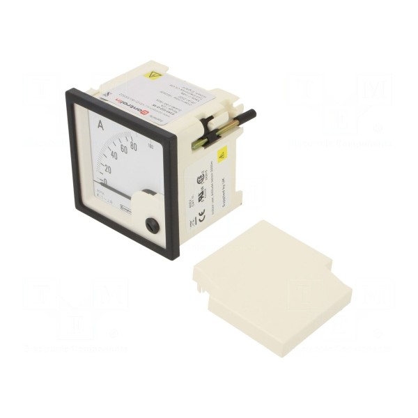 Amperomierz analogowy przeznaczony do montażu panelowego, umożliwiający pomiar prądu zmiennego (AC) w zakresach od 0 do 80 A oraz 160 A. Urządzenie obsługuje pomiar rzeczywistej wartości skutecznej True RMS, co pozwala na monitorowanie prądu w obwodach o częstotliwości 50...60 Hz. Konstrukcja miernika wykorzystuje pomiar pośredni realizowany przy pomocy przekładnika prądowego 1 A.