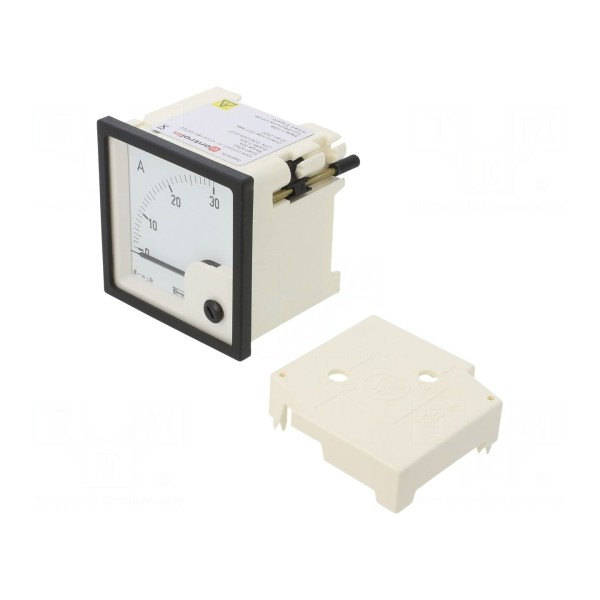 Amperomierz analogowy przeznaczony do montażu panelowego realizuje bezpośredni pomiar prądu przemiennego w zakresie od 0 do 30 A. Urządzenie obsługuje pomiar rzeczywistej wartości skutecznej True RMS przy częstotliwości pracy wynoszącej 50–60 Hz. Model ten jest przeznaczony do pracy w instalacjach wymagających ciągłego monitorowania parametrów elektrycznych.
