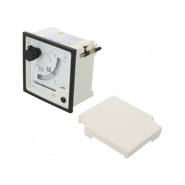 Amperomierz analogowy przeznaczony do montażu panelowego umożliwia pomiar prądu przemiennego AC w zakresach 0–1,25kA, 1,5kA oraz 2,5kA. Urządzenie realizuje pomiar pośredni z wykorzystaniem przekładnika prądowego o wartościach wejściowych 5A, 6A lub 10A. Klasa dokładności przyrządu wynosi 1,5.