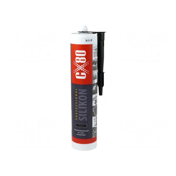 Guma silikonowa w kolorze czarnym jest przeznaczona do prac uszczelniających w różnego rodzaju urządzeniach i maszynach. Preparat o pojemności 0,31 l charakteryzuje się właściwościami szybkoutwardzalnymi w technologii RTV. Zakres temperatury pracy mieści się w przedziale od -65°C do 260°C, z możliwością pracy chwilowej w temperaturze do 380°C.