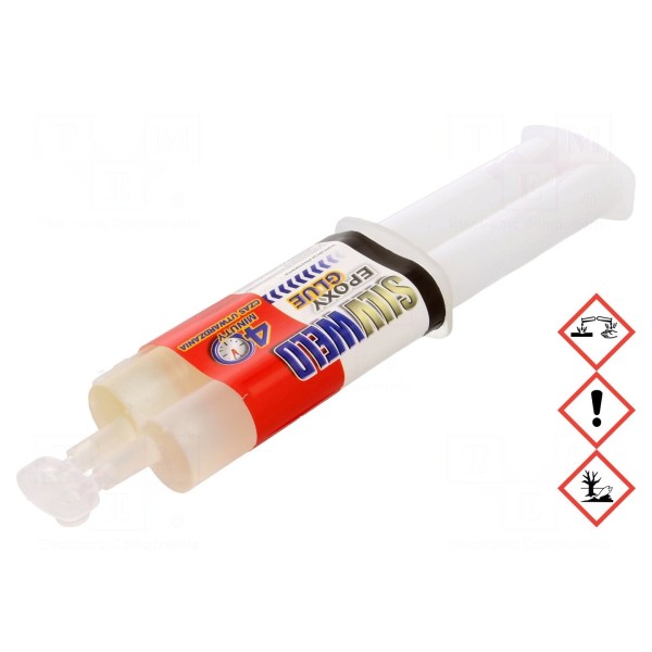 Dwuskładnikowy klej epoksydowy o pojemności 24 ml przeznaczony jest do łączenia oraz wypełniania ubytków. Produkt charakteryzuje się przezroczystym kolorem spoiny i wykazuje odporność na działanie wilgoci oraz temperaturę pracy do maksymalnie 150°C. Czas wiązania preparatu wynosi 4 minuty.