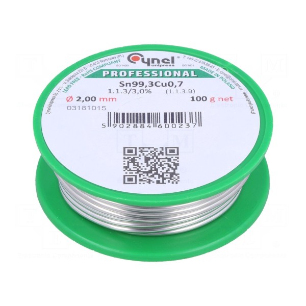 Cyna Sn99,3Cu0,7 ⌀2mm, 100g