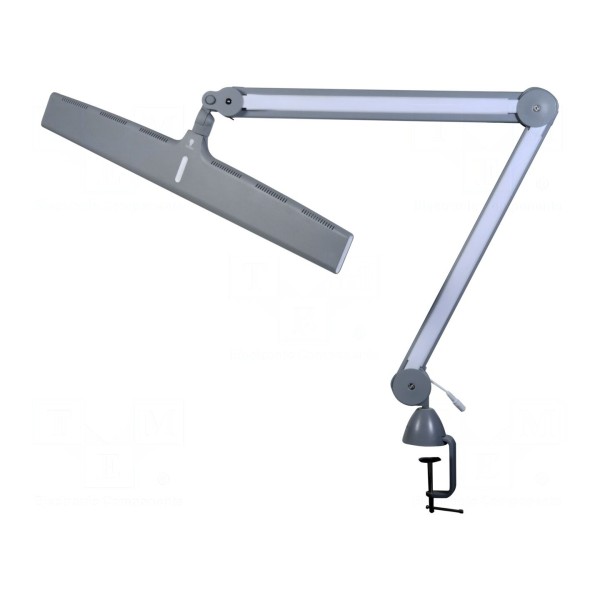 Lampa stołowa LED dysponuje strumieniem świetlnym o wartości 1566lm oraz temperaturą barwową 6000K. Urządzenie zasilane jest napięciem 230V AC i charakteryzuje się poborem mocy na poziomie 24W. W konstrukcji wykorzystano 120 diod, które zapewniają równomierne oświetlenie obszaru roboczego.