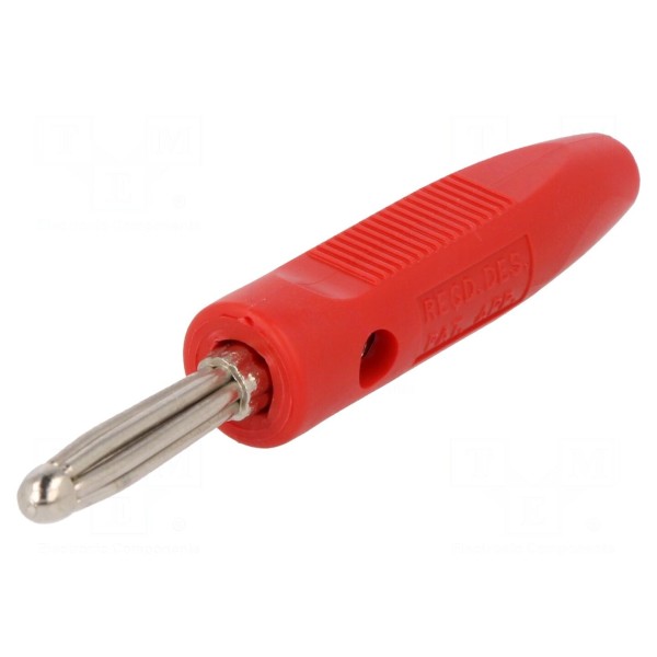 Złącze bananowe 4mm, 16A, 50V DC, czerwone