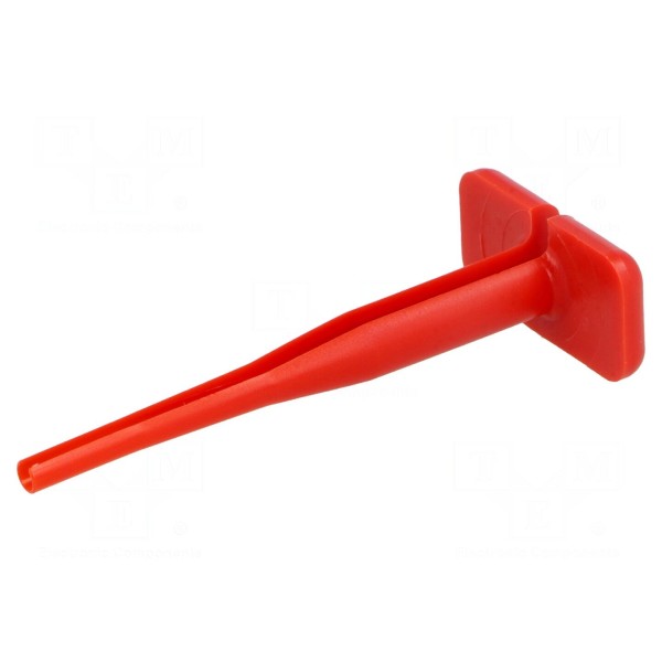 Narzędzie do demontażu przeznaczone jest do pracy ze stykami o rozmiarze przewodu w zakresie od 22AWG do 20AWG. Element charakteryzuje się czerwonym kolorem korpusu.
