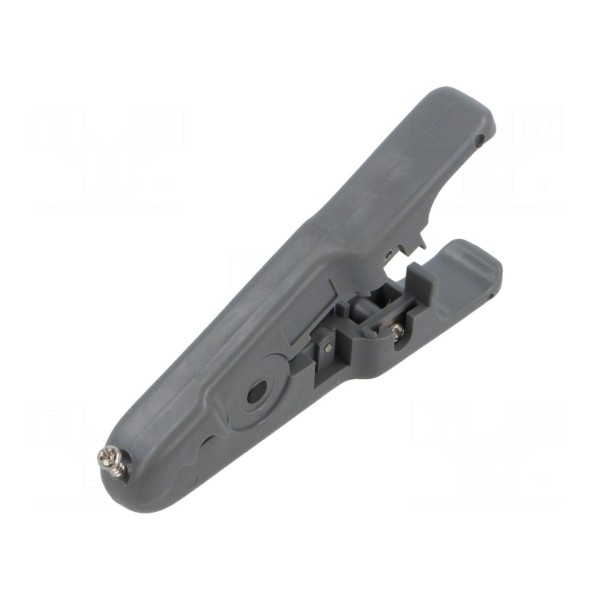 Narzędzie przeznaczone jest do usuwania izolacji zewnętrznej z przewodów wykorzystywanych w transmisji danych. Konstrukcja ściągacza pozwala na obsługę kabli typu UTP oraz STP o średnicy zewnętrznej mieszczącej się w zakresie od 5 mm do 15 mm.