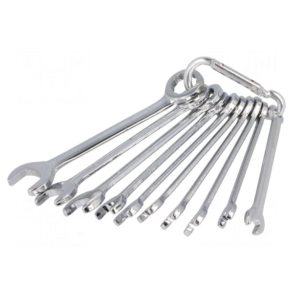Zestaw 10 kluczy płasko-oczkowych ze stali, rozmiary 4–11mm