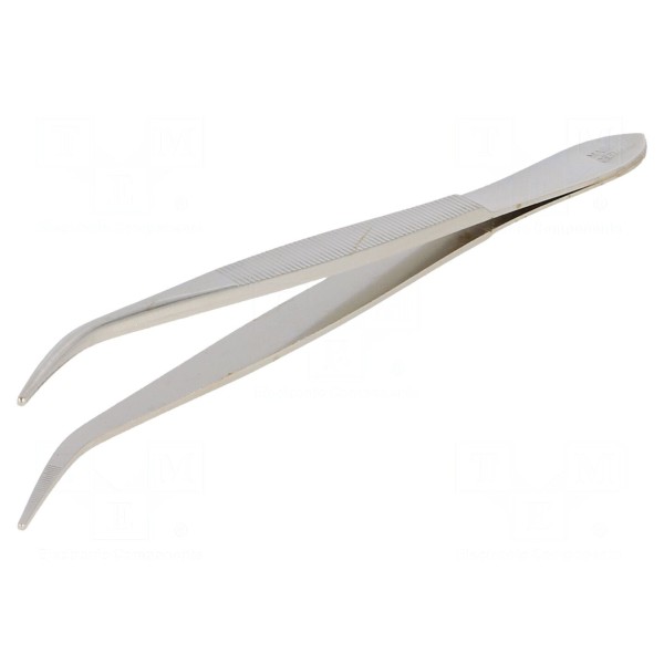 Pęseta 120mm, ostrza wydłużone zagięte, szerokość końcówki 1mm