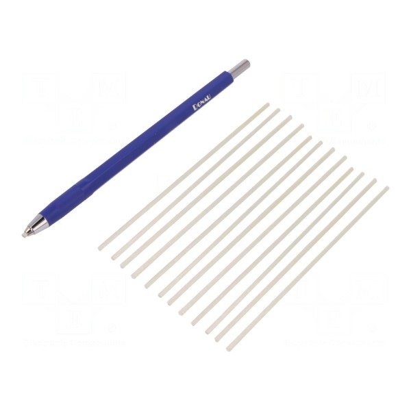 Szczotka z wkładem z włókna szklanego przeznaczona jest do czyszczenia precyzyjnych elementów, ścieżek drukowanych oraz miejsc łączeń. Narzędzie charakteryzuje się wkładem w postaci zwartej wstążki, którego wysuwanie odbywa się za pomocą pokrętła umieszczonego na końcu oprawki.
