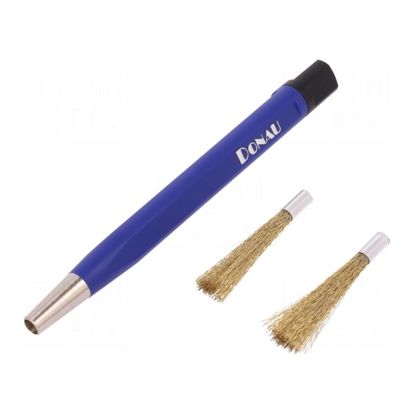 Narzędzie przeznaczone jest do czyszczenia precyzyjnych elementów, ścieżek drukowanych oraz miejsc łączeń w pracach serwisowych i lutowniczych. Wkład szczotki wykonano z drutu mosiężnego w postaci zwartej wstążki, co pozwala na precyzyjne usuwanie zanieczyszczeń z niewielkich powierzchni.