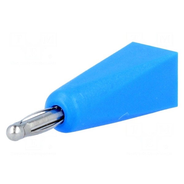 Produkt wykonany w kolorze niebieskim. Konstrukcja złącza umożliwia połączenie z gniazdami bananowymi o średnicy 2mm.